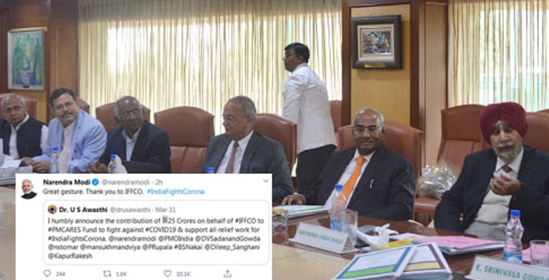इफ्कोले प्रधानमन्त्री राष्ट्रिय राहत कोषमा २५ करोड रुपैयाँ सहयोग गरेपछि भारतीय प्रधानमन्त्री नरेन्द्र मोदीले संस्थालाई धन्यवाद दिएको छ । प्रधानमन्त्री मोदीले ट्वीट गरेर लेखेका छन्, शानदार संकेत, इफ्कोका धन्यवाद ।