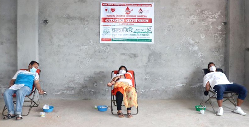 काठमाडौं । चन्द्रागिरि बचत तथा ऋण सहकारी संस्थाले १९ औं स्थापना दिवसको अवसर पारेर रक्तदान कार्यक्रम सम्पन्न गरेको छ । कोभिड १९ को विश्वव्यापी महामारीबीच अस्पतालहरुमा रगतको अभाव भइरहेकोले ब्लोड डोनर्स एशोसिएसन नेपाल (ब्लोदान) को आह्वानमा स्थापना दिवसको अवसर पारी उक्त रक्तदान कार्यक्रमको आयोजना गरिएको संस्थाले जनाएको छ । कार्यक्रममा ६३ जना रक्तदाताहरुले रक्तदान गरेको संस्थाले जनायो ।