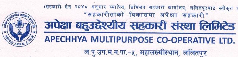 ललितपुर । महालक्ष्मीस्थानमा रहेको अपेक्षा बहुउद्देश्यीय सहकारी संस्थाले सम्पर्क ब्यक्ती तोकेर सेवा दिने बताएको छ । संस्थाले विश्वव्यापी रुपमा फैलिइरहेको कोरोना भाइरस संक्रमणको कारण नेपाल सरकारले गरेको लकडाउनको पालना गर्दै संस्था खोलेर सदस्यलाई सेवा दिन जोखिम हुने भन्दै सम्पर्क ब्यक्तीमार्फत सेवा दिने बताएको छ ।