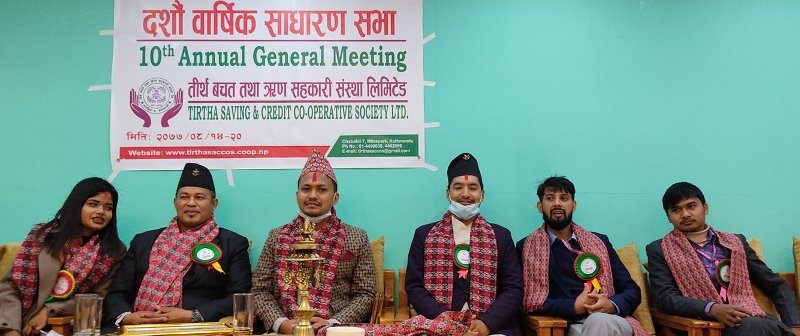 काठमाडौं । चाबहिलमा रहेको तीर्थ बचत तथा ऋण सहकारी संस्थाको निर्वाचन सहितको १०औं वार्षिक साधारणसभा सम्पन्न भएको छ । सहकारी विभागको निर्देशन अनुसार कोरोनाको जोखिमलाई मध्यनजर गर्दै पूर्ण सावधानी अपनाएर भीडभाड रहित बनाउनको लागि मंसिर १४ गते देखी २० गते सम्म सदस्यता नम्बर अनुसार उपस्थित गराएर सभा सम्पन्न गरिएको संस्थाका अध्यक्ष अनन्त श्रेष्ठले बताए ।