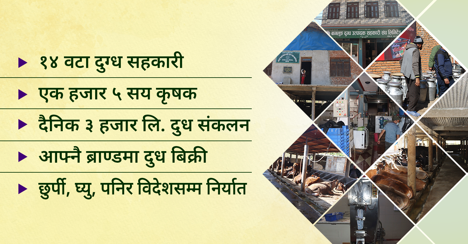 बाग्लुङ । बाग्लुङका बालानान्द कडेल ४५ सालअघि भारतको ग्वाटीमा दुध बेच्थे । घरघरमा पुगेर दुध बेच्दा उनले पैसा त कमाए तर, मनमा सन्तोष भने भएन । दुःख गरेपछि त नेपालमै पैसा कमाउन सकिन्छ, दुधै बेच्ने हो भने नेपालमै किन नबेच्ने ?यहि भावना सहित उनी आफ्नै देशमा पशुपालन गरेर दुध बेच्ने निधो लिएर नेपाल फर्कीए । बजारभन्दा करिव १० किलोमिटर टाढा उनको घर थियो । गाई–भैंसी पालेर दैनिक २० किलोमिटर आउजाउ गर्दै उनले बजारका घरघरमा दुध बेच्न थाले ।