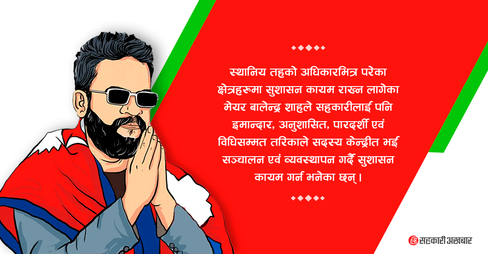 सामाजिक संजालमार्फत मेयर बालेन्द्रले ‘वित्तिय जोखिमबाट बचौँ, सहकारीहरुलाई संकटग्रस्त हुनबाट बचाऔँ भन्दै’ सदस्य र बचतकर्ताहरुलाई जोखिमबाट बच्न अनुरोध गरेका छन् ।