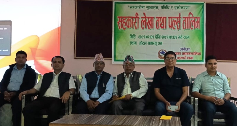 विराटनगर । विराटनगर महानगरपालिका सहकारी शाखाको आयोजनामा मंगलबारदेखि लेखा तथा पल्र्स तालिम सुरु भएको छ । तालिमको महानगरको आर्थिक विकास समितिका संयोजक श्याम घिमिरेले उद्घाटन गरेका थिए ।
