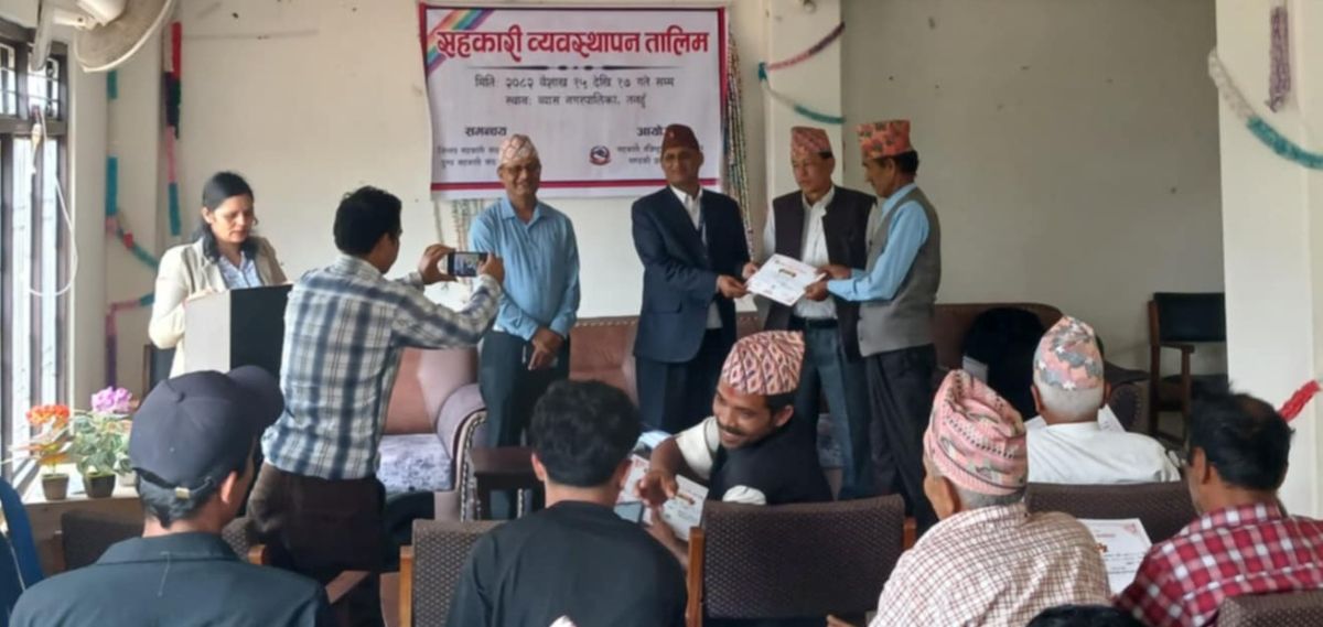 तनहुँ जिल्लाका विभिन्न दुग्धउत्पादक सहकारी संस्थाका ३४ जना सहभागी रहेको तालिममा सहकारी रजिष्ट्रार भेषराज रिजाल, भेटेरिनरी डाक्टर लक्ष्मण ढकाल, शाखा अधिकृत ईश्वरी ढकाल र शाखा अधिकृत चोलाकान्त वाग्लेले कक्षा सहजीकरण गरेका थिए ।