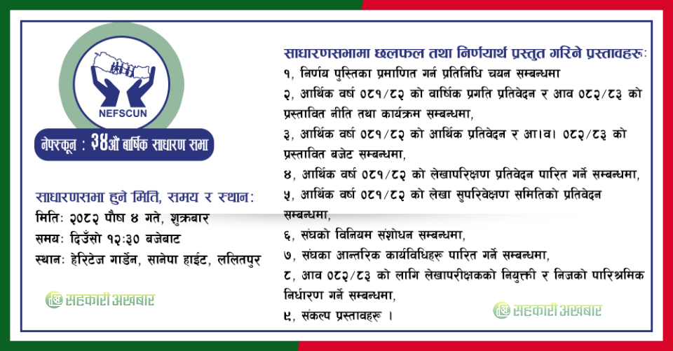 नेफ्स्कूनको ३४ औं बार्षिक साधारण सभा सम्वन्धि सूचना: