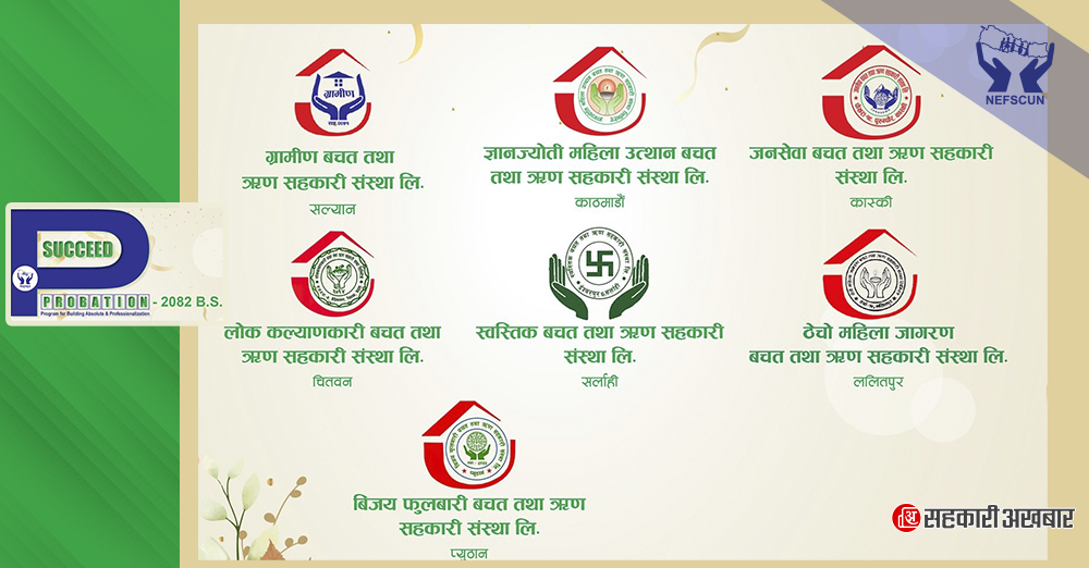 काठमाडौं । नेपाल बचत तथा ऋण केन्द्रीय सहकारी संघ (नेफ्स्कून) ले प्रदान गर्दैैआएको पूर्ण तथा व्यावसायिक साकोस विकास कार्यक्रम (प्रोवेशन) ब्राण्ड यो वर्ष सातवटा संस्थाले प्राप्त गरेका छन् । यो वर्ष सातवटा बचत तथा ऋण सहकारी संस्थाले मात्र साकोसहरुको गुणस्तर सुनिश्चितता सम्बन्धी प्रोवेसन ब्राण्ड प्राप्त गरेका हुन् ।