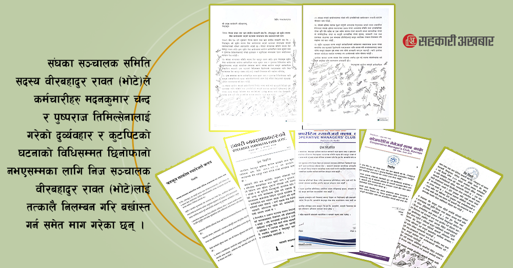 संघका सञ्चालक समिति सदस्य वीरबहादुर रावत (भोटे)ले कर्मचारीहरु मदनकुमार चन्द र पुष्पराज तिमिल्सेनालाई गरेको दुव्र्यवहार र कुटपिटको घटनाको विधिसम्मत छिनोफानो नभएसम्मका लागि निज सञ्चालक वीरबहादुर रावत (भोटे)लाई तत्कालै निलम्बन गरि बर्खास्त गर्न समेत माग गरेका छन् ।