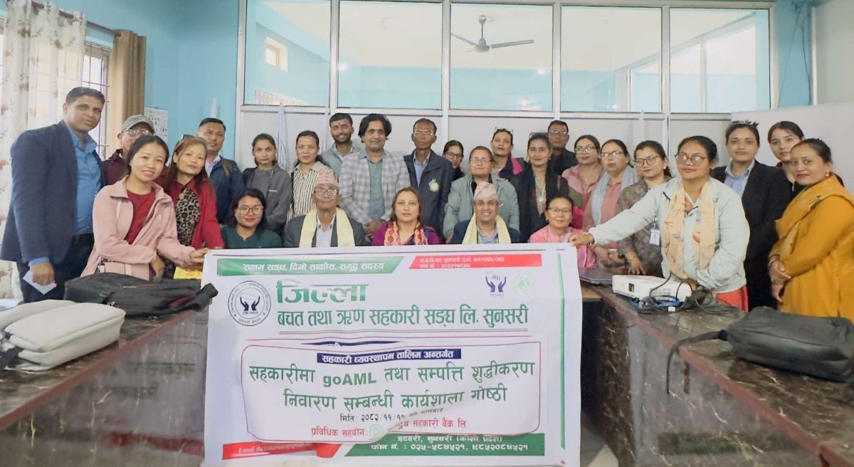 काठमाडौं । जिल्ला बचत तथा ऋण सहकारी सङ्घ सुनसरीले सहकारीमा गोएमएल तथा सम्पत्ति शुद्धीकरण निवारण सम्बन्धी एकदिने कार्यशाला गोष्ठी सम्पन्न गरेको छ । सहकारी बैङ्कको प्राविधिक सहयोगमा सम्पन्न गोष्ठीको बैङ्कका सदस्य सेवा महाशाखाका सहायक अधिकृत मनोज लामिछानेले गरेका थिए ।
