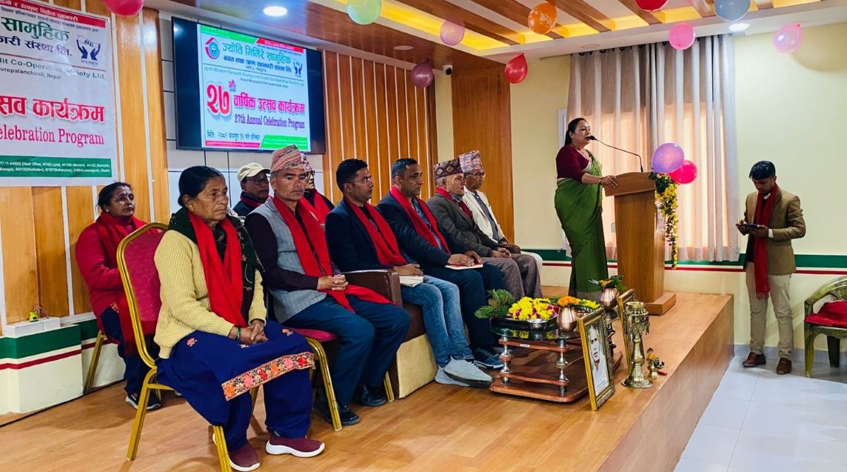 काठमाडौं । काभ्रेको पनौतीमा मुख्य कार्यालय रहेको ज्योति मिर्मिरे सामुहिक बचत तथा ऋण सहकारी संस्थाले २७औँ वार्षिकोत्सव कार्यक्रम गरेको छ । संस्थाका अध्यक्ष उद्धव सापकोटाको अध्यक्षतामा सम्पन्न कार्यक्रममा संस्थाको उपलब्धि, वर्तमान अवस्था तथा आगामी योजनाबारे सञ्चालक समितिलगायत सल्लाहकार लेखा तथा विभिन्न उपसमिति र कर्मचारीमाझ प्रस्तुत गरिएको थियो । स्थापना दिवसको अवसरमा संस्थाले गत शुक्रबार खुला रक्तदान कार्यक्रम आयोजना गरेको थियो । कार्यक्रममा ७० जना सदस्यहरूको उपस्थिति रहेको थियो ।