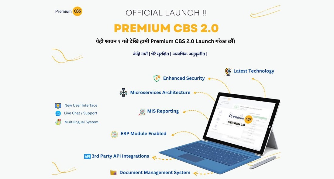 काठमाडौं । वेबबेस्ड प्रविधियुक्त प्रिमियम कोर बैकिङ सिस्टम (प्रिमियम सीबीएस)ले भर्सन २.० सार्वजनिक गरेको छ। नेपालका ५ सयभन्दा बढी संस्थालाई कोर बैंकिङ सिस्टम प्रदान गरिरहेको प्रिमियम टेक्नोलोजिज प्रालीले चालु आर्थिक वर्षको पहिलो दिन (साउन १) गते देखि ‘प्रिमियम भर्सन २.०’ सार्वजनिक गरेको हो । प्रिमियमको भर्सन २.० ईआरपी र माईक्रो मोडेलमा आधारित रहेको संस्थाका प्रमुख कार्यकारी अधिकृत मोहन बनको भनाइ छ।