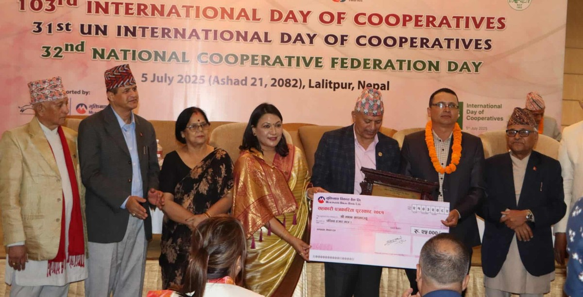 सहकारी महासंघ र भूमि व्यवस्था, सहकारी तथा गरिवी निवारण मन्त्रालयले १०३ औं अन्तर्राष्ट्रिय सहकारी दिवसको अवसरमा सयुक्त रुपमा आयोजना गरेको कार्यक्रममा व्यक्ति तथा संस्थालाई सम्मान तथा पुरस्कार प्रदान गरिएको हो ।